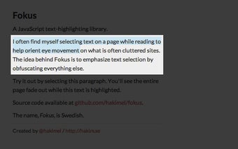 Fokus to darmowe rozszerzenie dla przeglądarki Chrome, opracowane przez hakim.elhattab, które umożliwia użytkownikom podkreślanie i wyróżnianie tekstu na stronach internetowych. Dzięki Fokusowi użytkownicy mogą zaznaczyć dowolny tekst na stronie internetowej, a reszta strony zostanie pokryta półprzezroczystym czarnym nakładką, przyciągając uwagę do zaznaczonego tekstu.